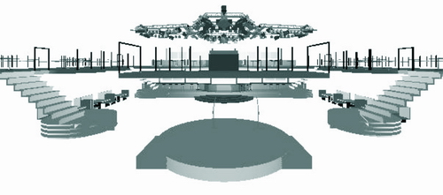 首先,我们建立三维建筑模型(在CAD建模过程中,我们注意了模型度对运算结果的影响,尽量提高模型的近似度以保证运算结果的可参考性),选用EASE音箱驱动设备库中适当的音箱,安置到模型中我们所预期的位置,并以三维坐标形式表达建筑内部结构和音箱方位、音箱投射角度,同时给各音箱加以不同的驱动功率,经过计算,可准确地模拟计算出声音的覆盖范围、声压的分布、声音的清晰度、传声增益等,并将计算出的效果转化为视觉效果,这是一种实用而又有效的设计方法。